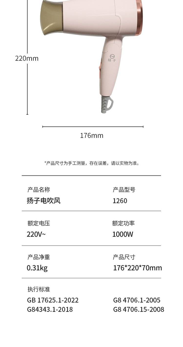 【企业合作】扬子 1260电吹风 可折叠手柄 防过热保护