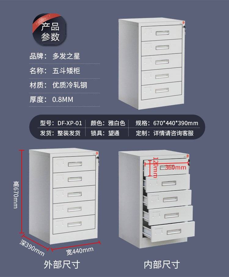 办公室桌面文件柜 带锁可移动钢制矮柜 加厚资料柜可定做