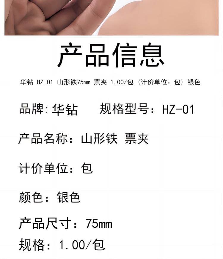 华钻 HZ-01 山形铁75mm 票夹 票据夹 (计价单位:个) 银色