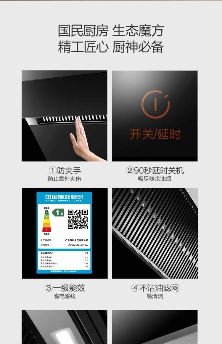 万和抽油烟机家用小型侧吸式厨房大吸力自动清洗壁挂式吸油烟机