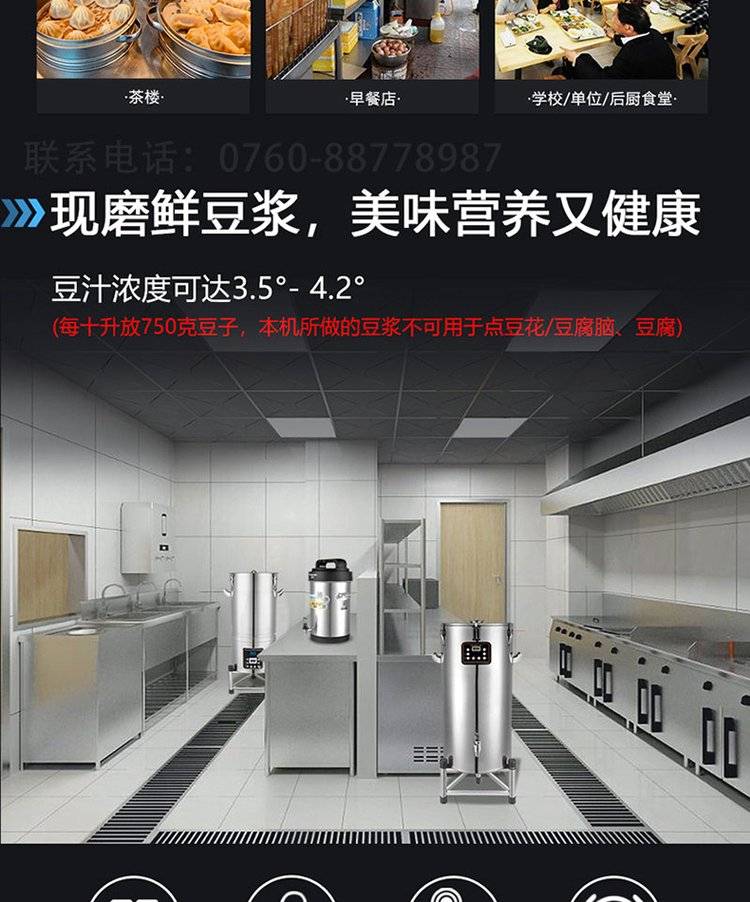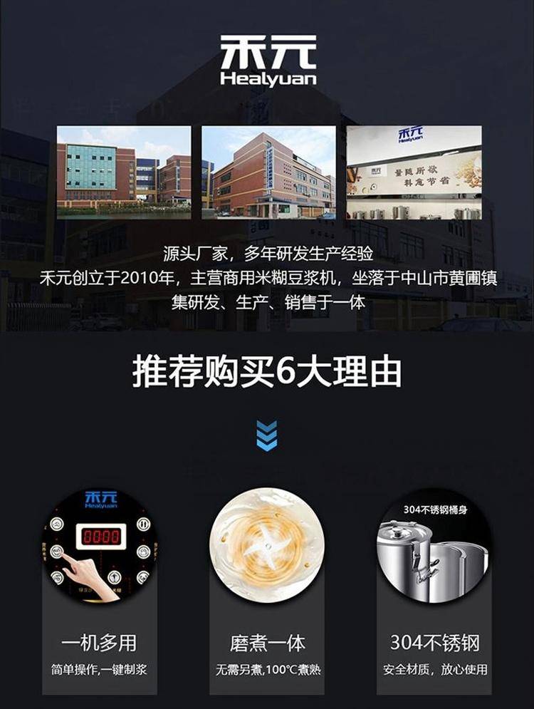 禾元商用豆浆机 全自动全钢型煮磨一体 大容量磨浆机 食堂早餐店用