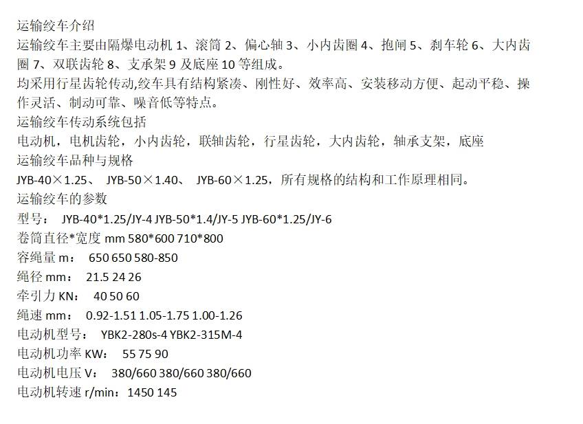 运输绞车 采用行星齿轮传动 具有结构紧凑 性能稳定
