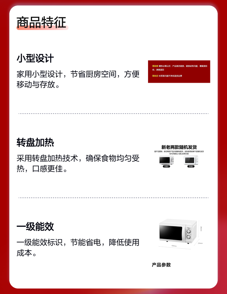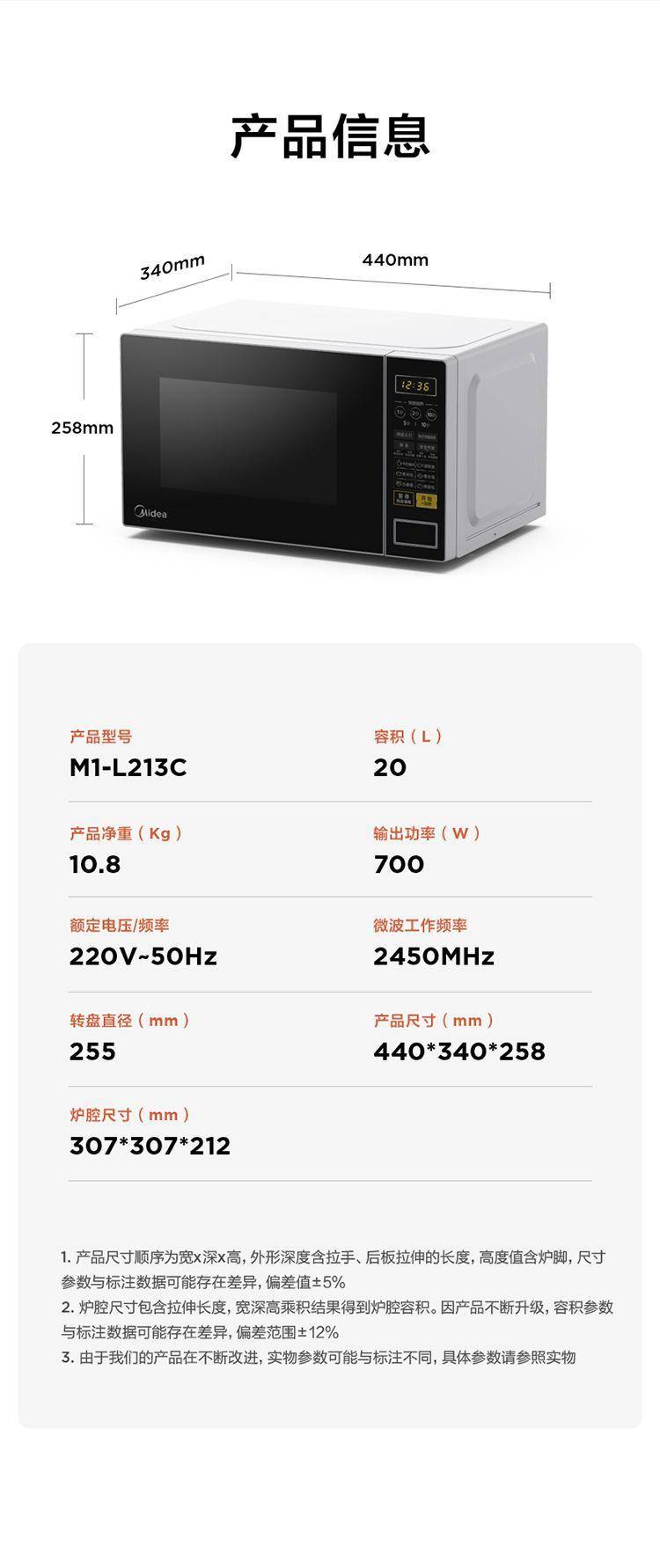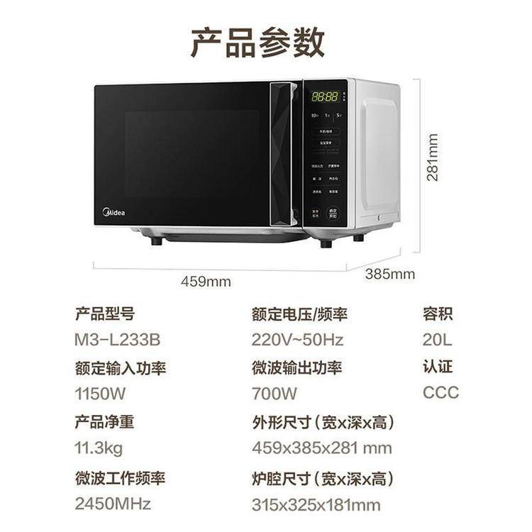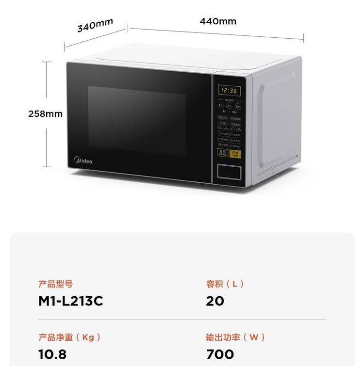 美的微波炉M1-L213C 家用小型20升 转盘加热便捷实用