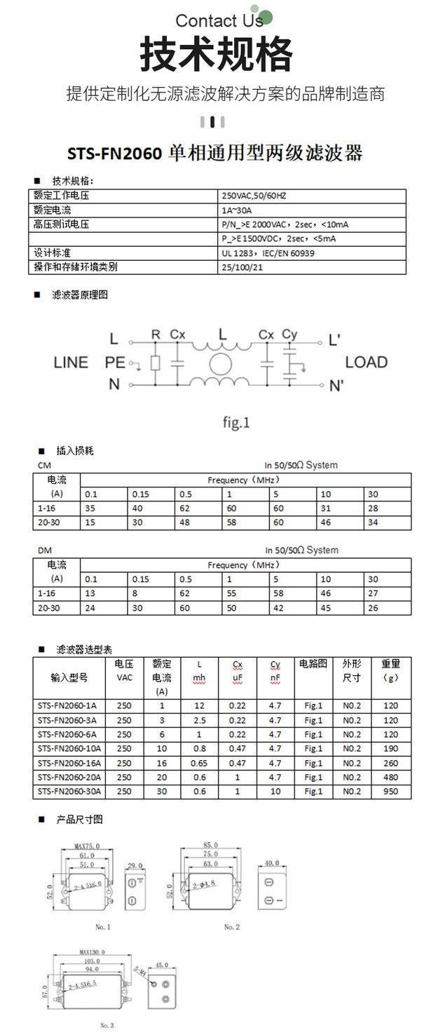 STS-FN2060单相通用型两级emi滤波器 专业厂家