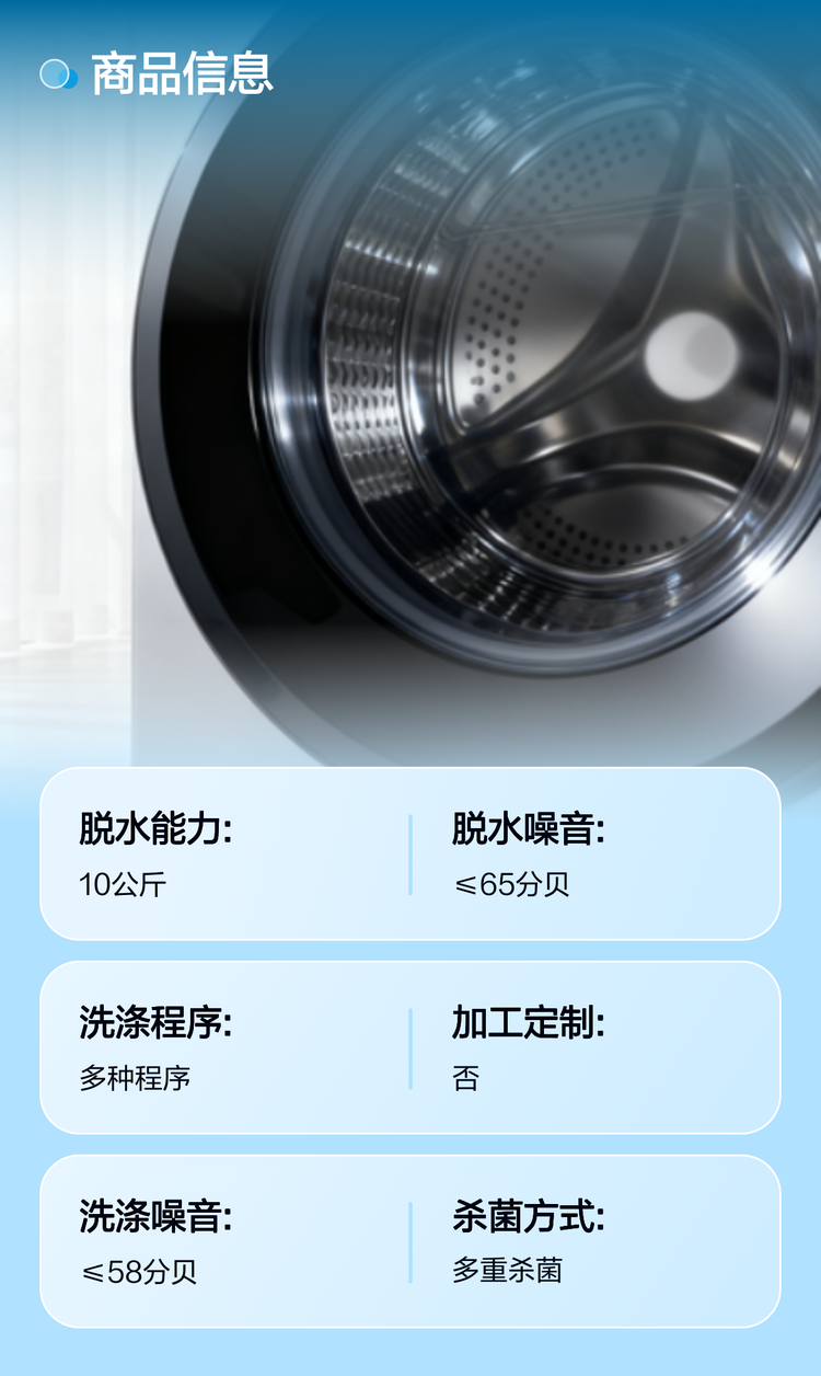 创维10公斤滚筒洗衣机 多种洗涤程序 可调转速