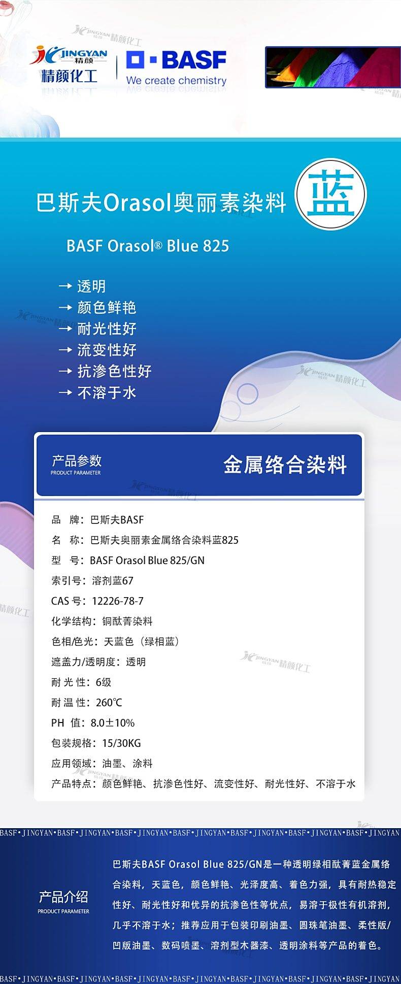 2222DIC太阳化学825酞菁染料涂料油墨用巴斯夫酞菁蓝金属络合染料