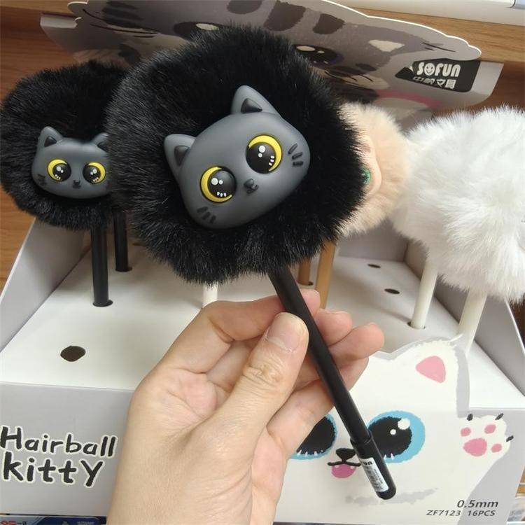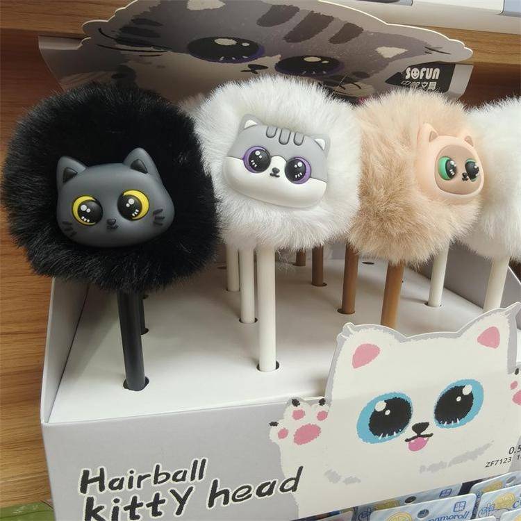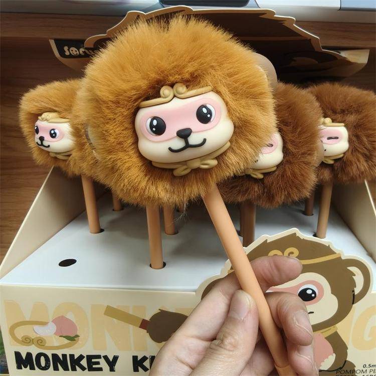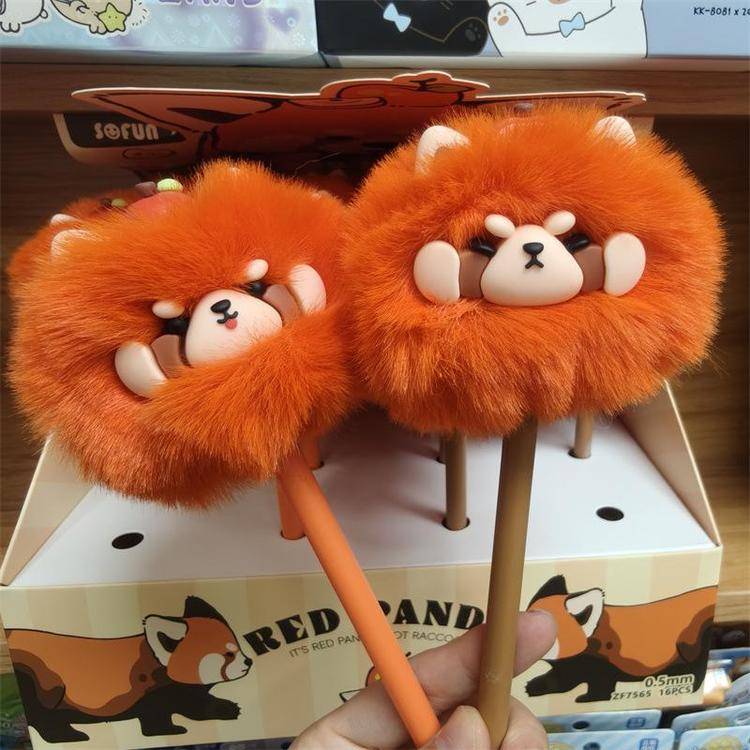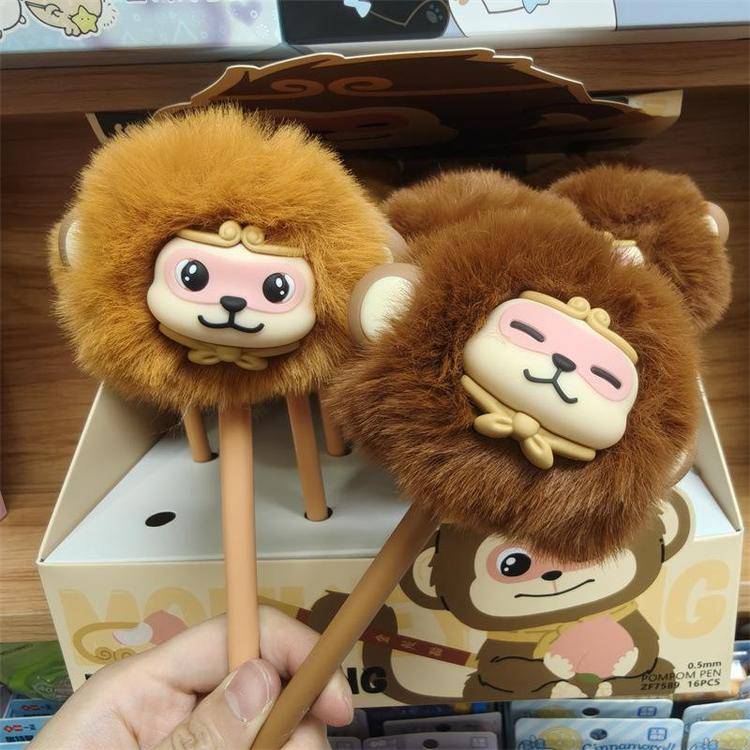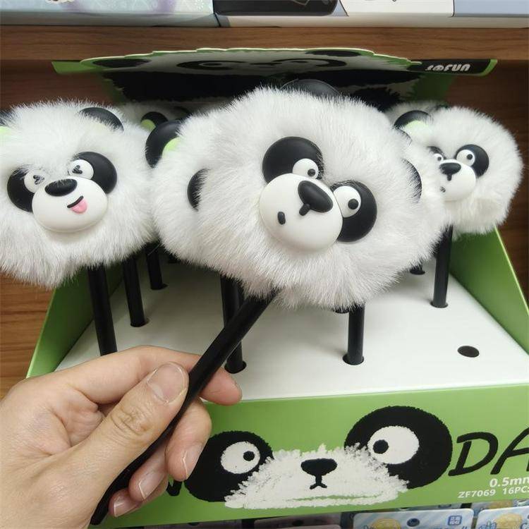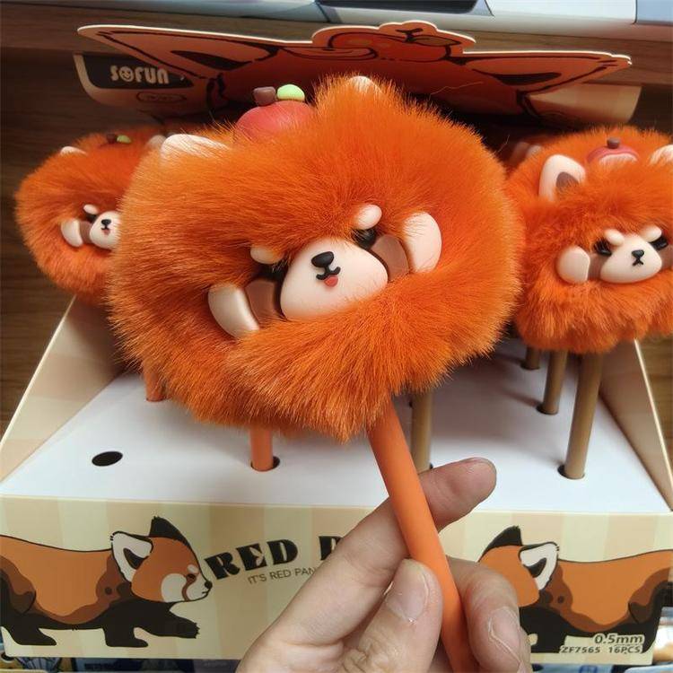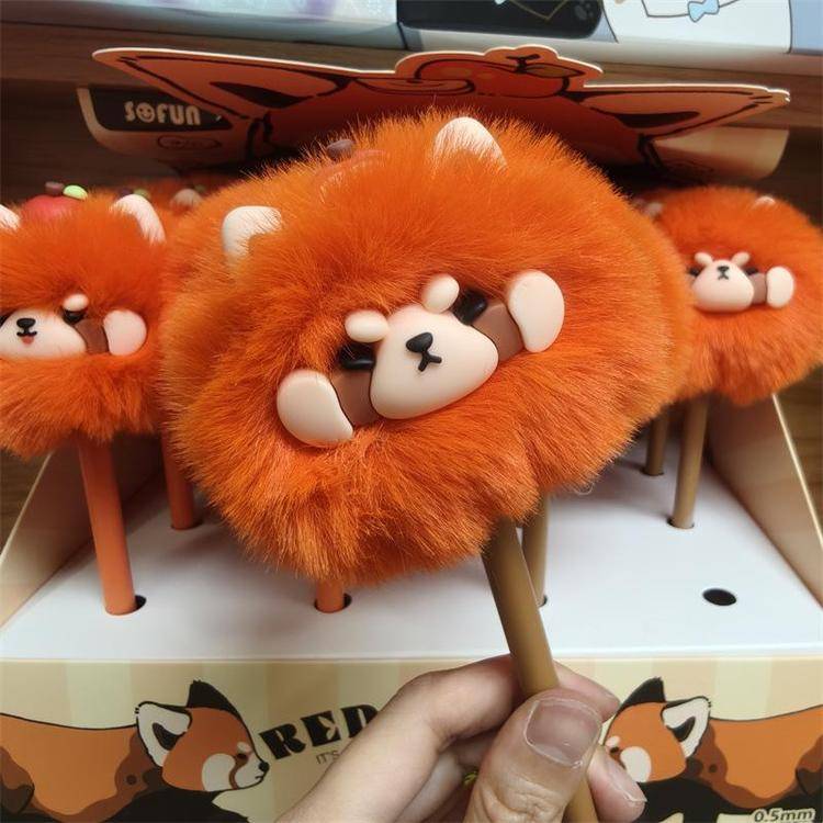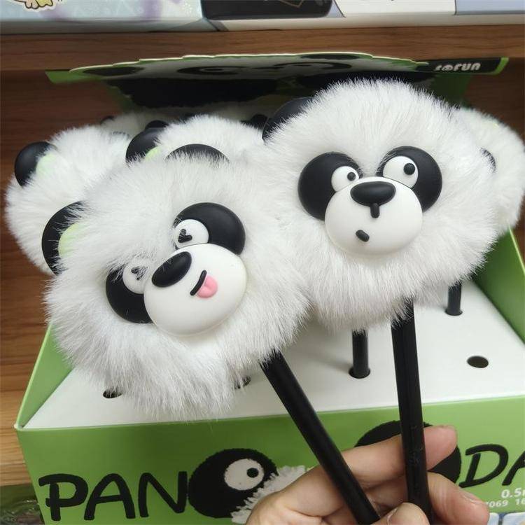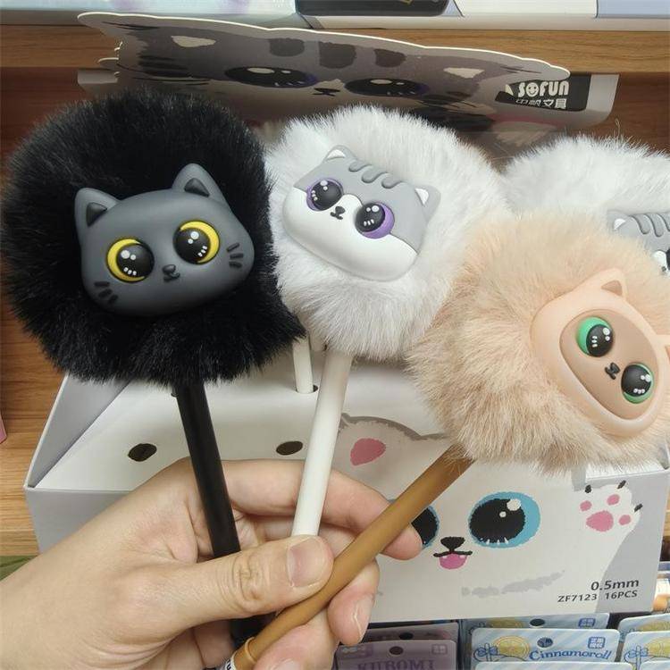 外贸海洋动物萌宠企鹅海豹毛球中性笔熊猫狐狸猴子毛茸茸水笔礼品
