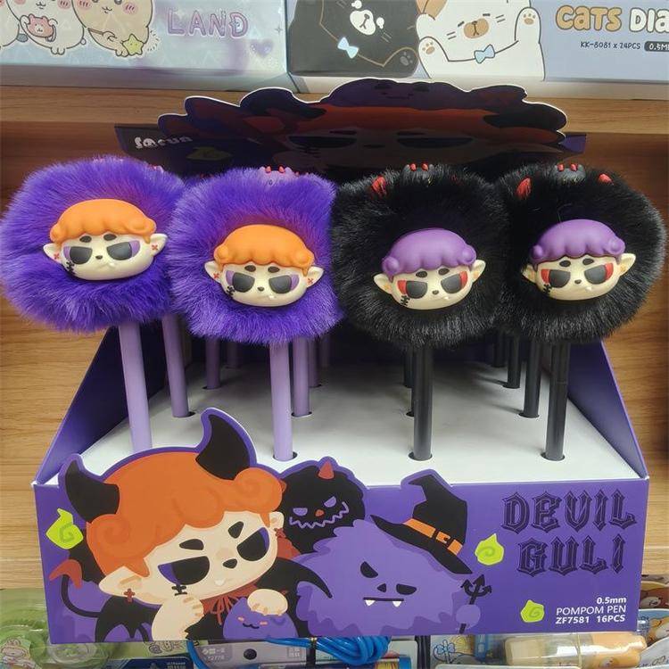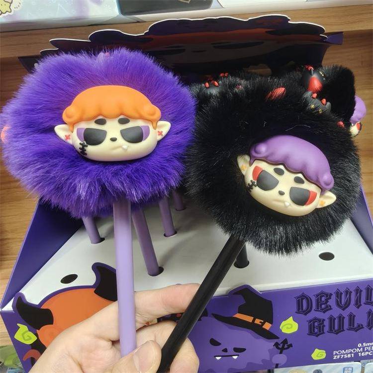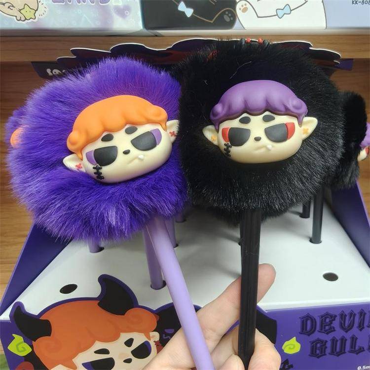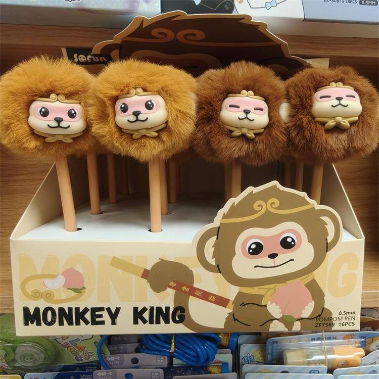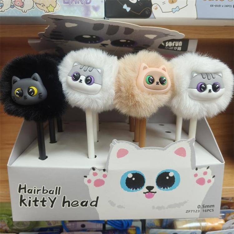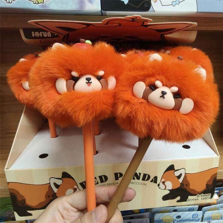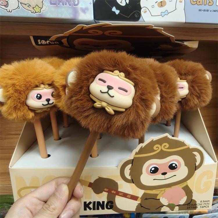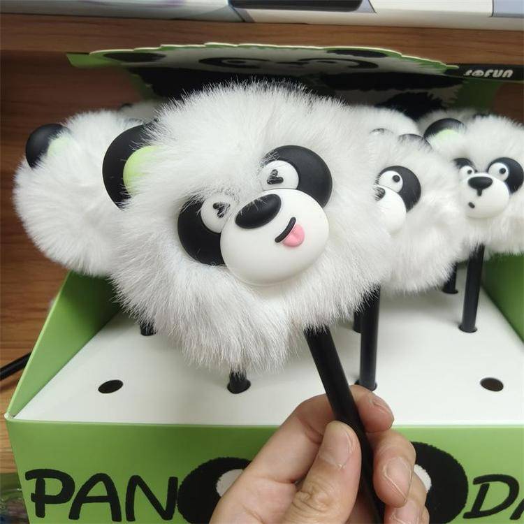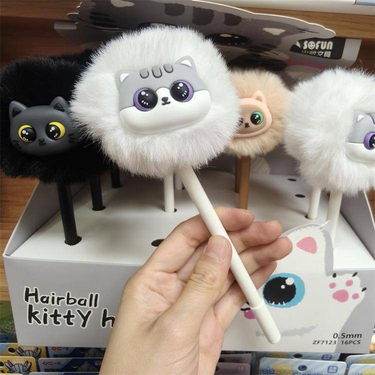 外贸海洋动物萌宠企鹅海豹毛球中性笔熊猫狐狸猴子毛茸茸水笔礼品