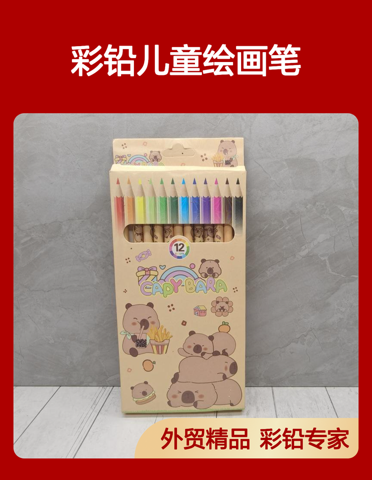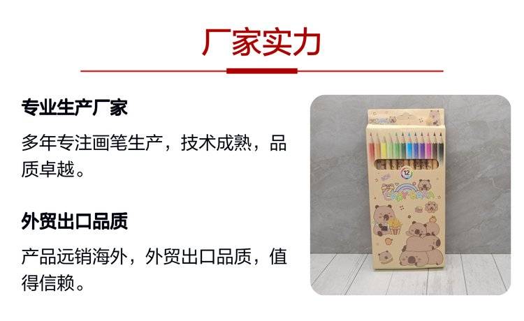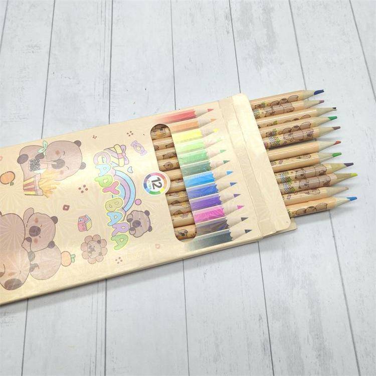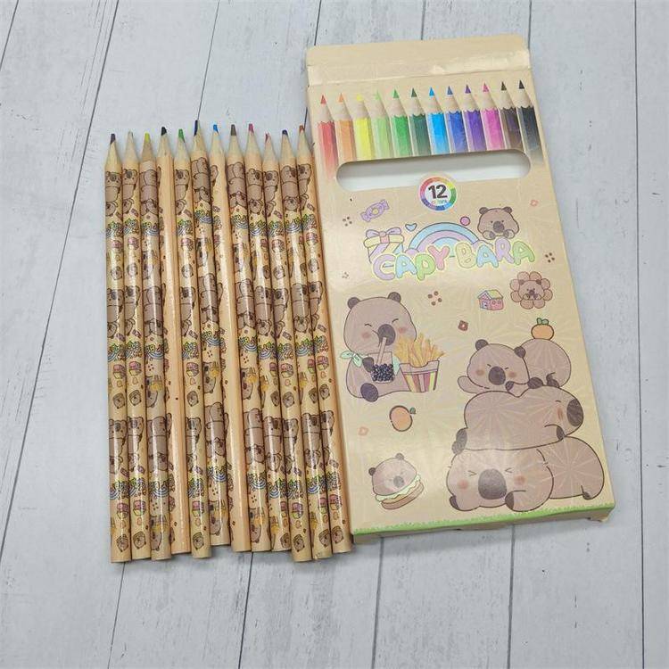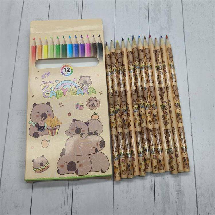 外贸卡皮巴拉彩铅儿童绘画笔豚豚崽涂鸦笔佛系水豚12色彩色铅笔批