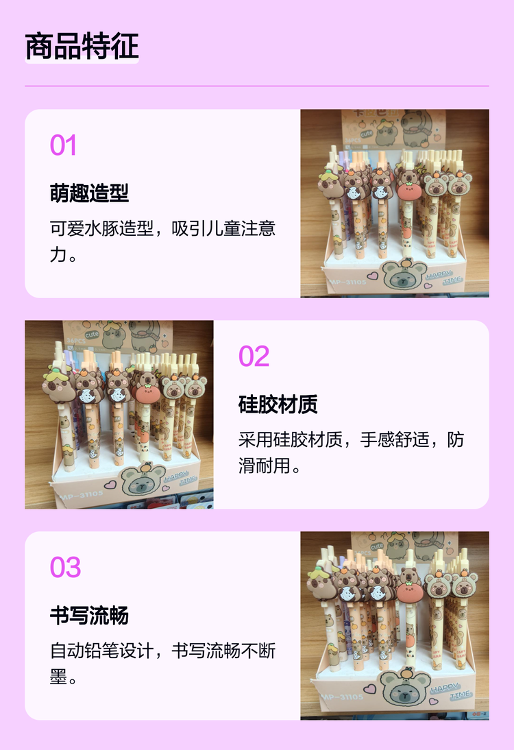 外贸萌宠硅胶卡皮巴拉活动铅笔 可爱水豚造型 儿童专用写字笔