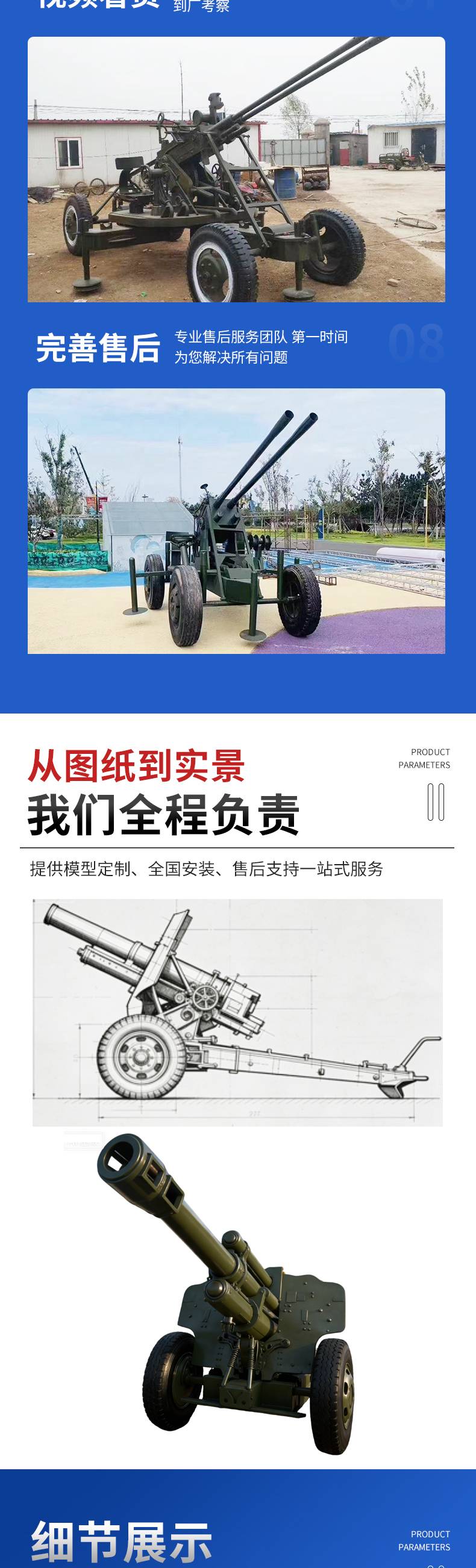 大型坦克模型仿真开动装甲车37高射炮榴弹炮研学基地户外军事模型