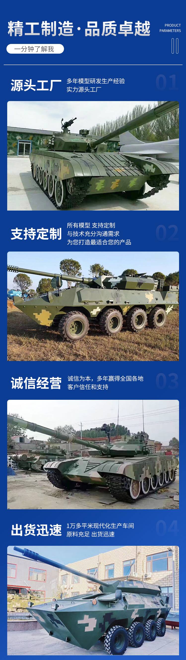 大型坦克模型仿真开动装甲车37高射炮榴弹炮研学基地户外军事模型