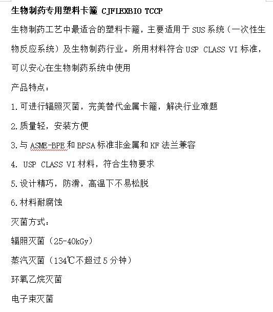 一次性生物制药专用塑料卡箍 CJFLEXBIO TCCP 尼龙铰链式夹子