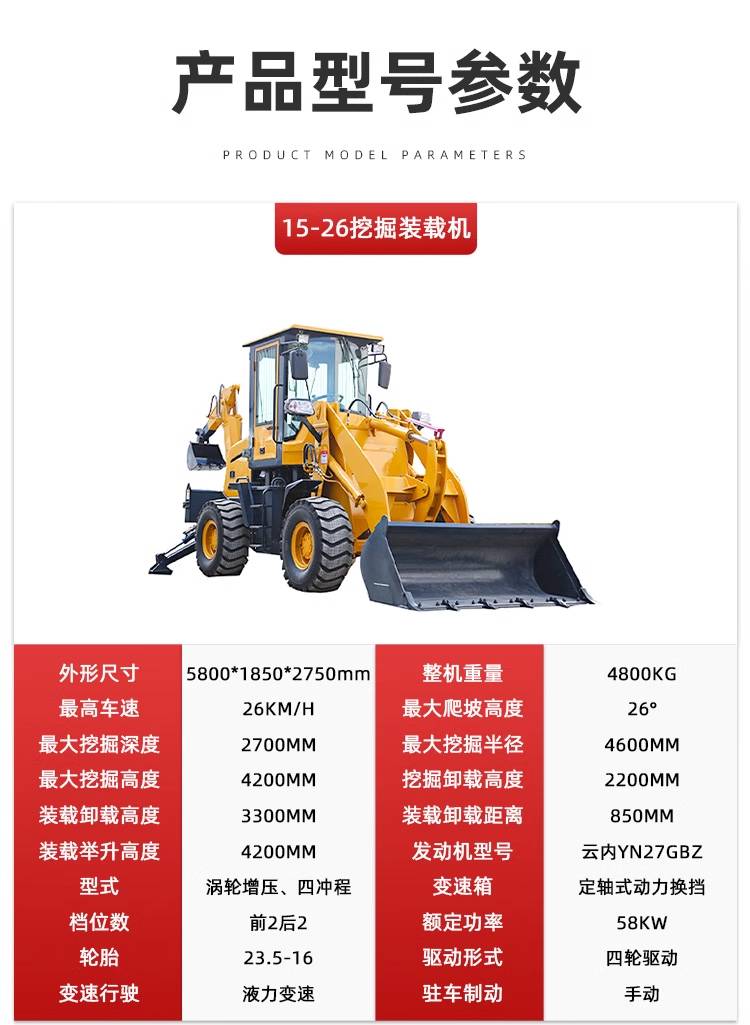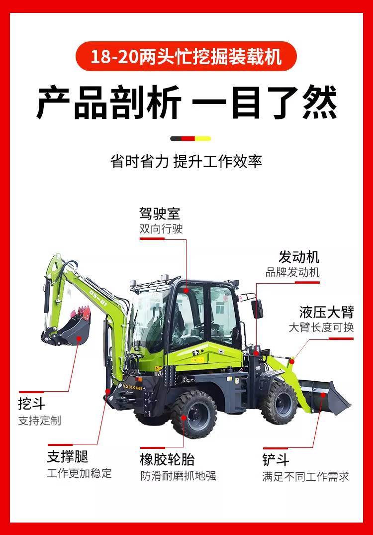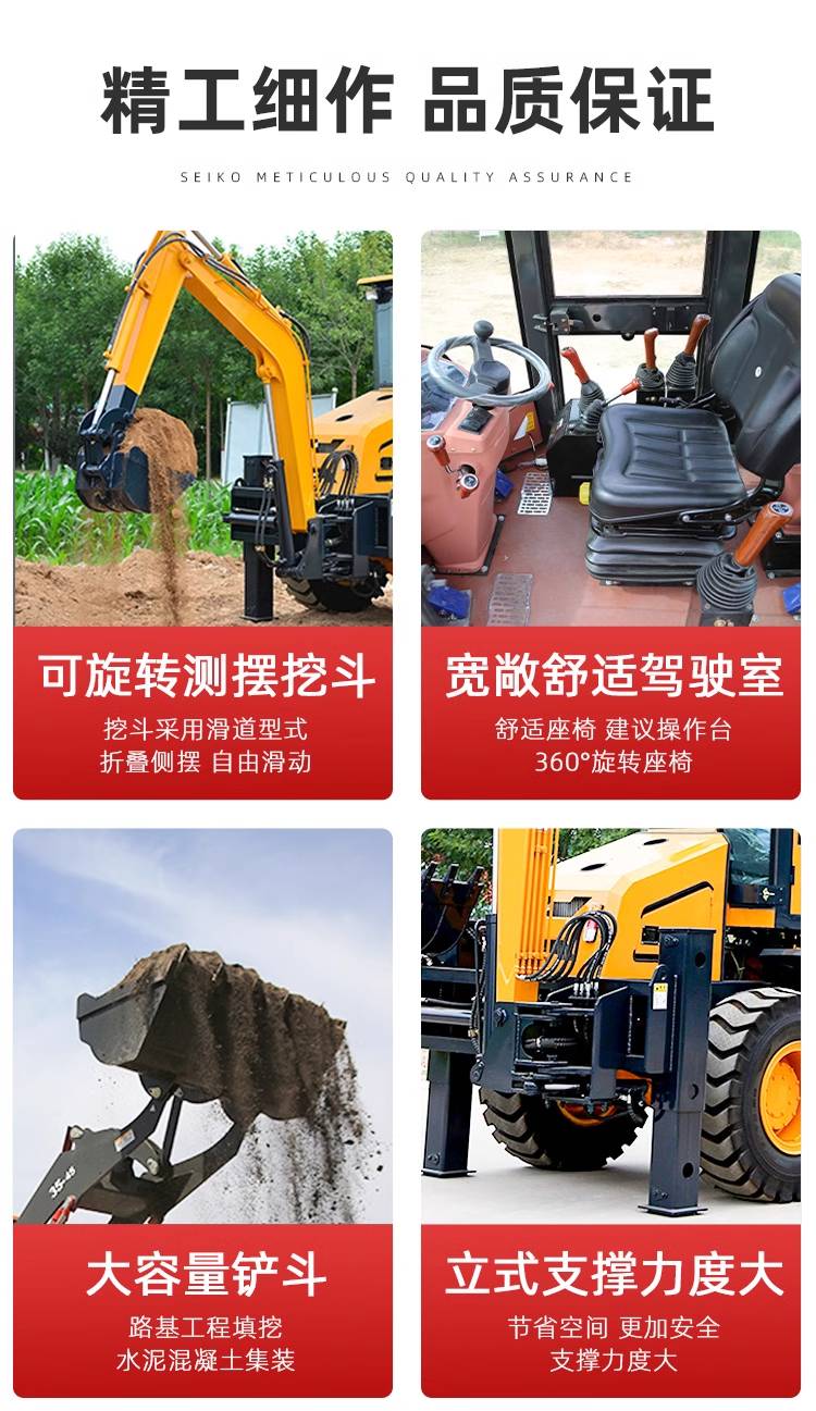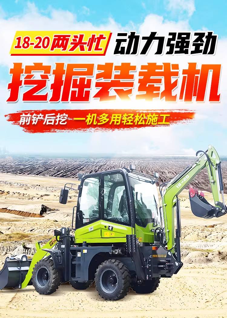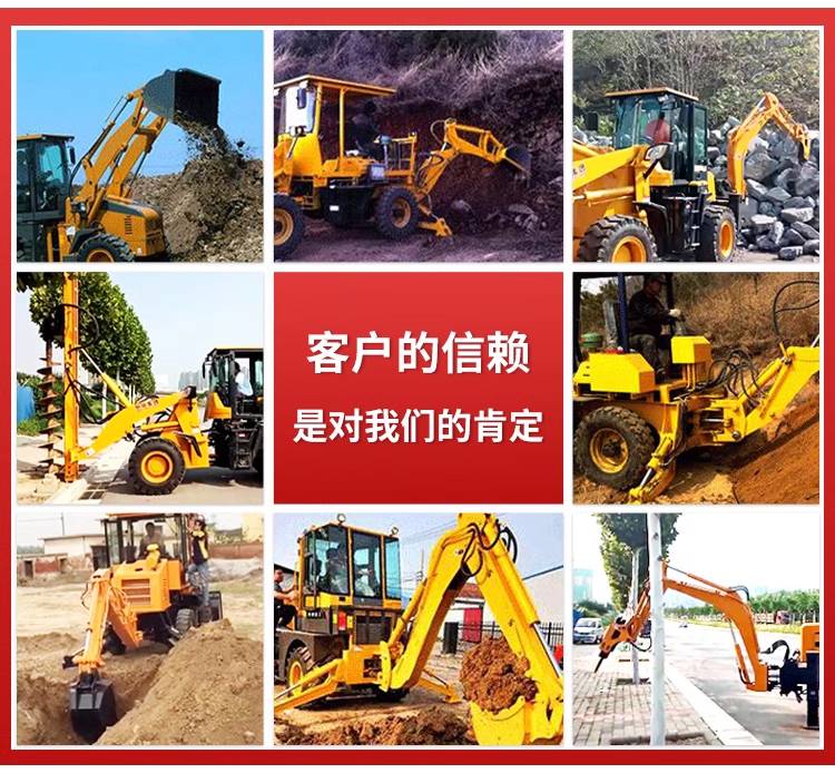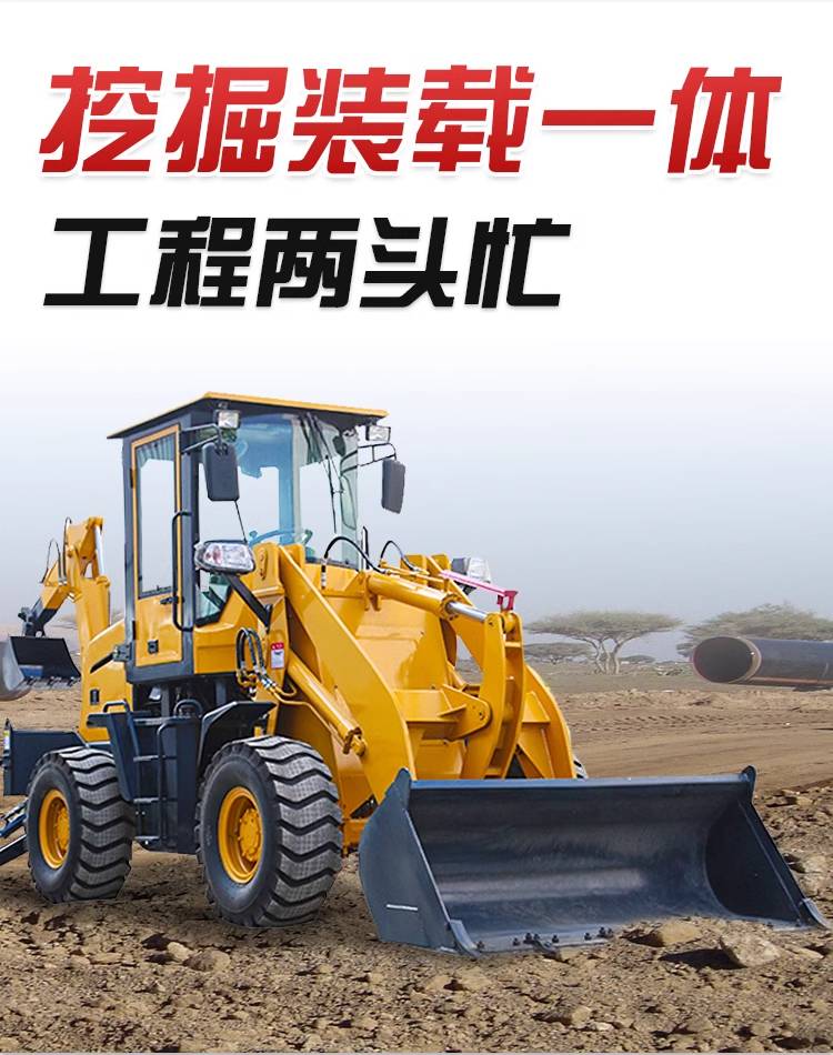 多功能铲挖一体机 轮式四驱挖掘装载机 农用前装后挖两头忙