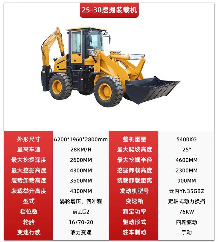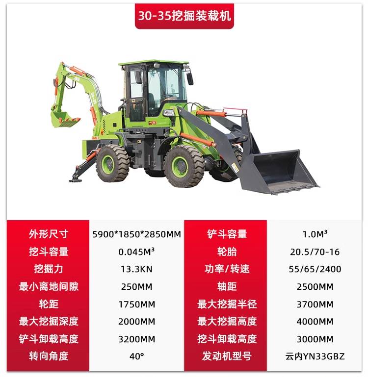 Multi-purpose shovels, wheeled four-wheeled excavator loaders, agricultural front loads, and two bus