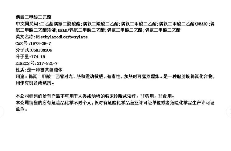 2222偶氮二甲酸二乙酯 CAS号 1972-28-7 脂肪族偶氮化合物