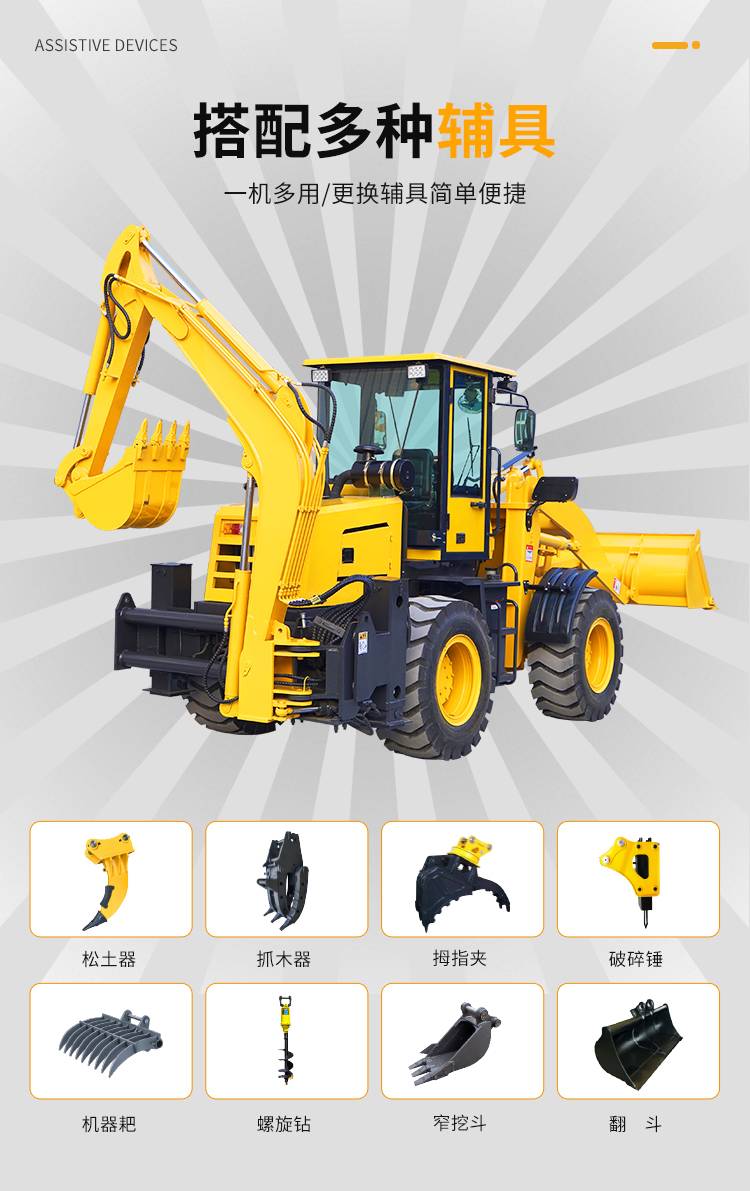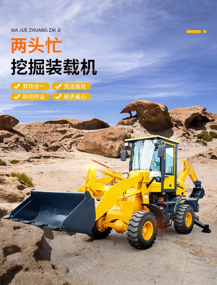 两头忙挖掘装载机 一机多用轮式挖铲一体机 前铲后挖设计