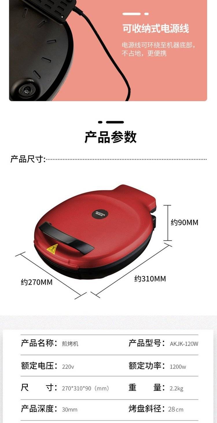 澳柯玛 电饼铛 AKJK-120W 钰淼企业礼物 MY-YYHLW-(T)-58