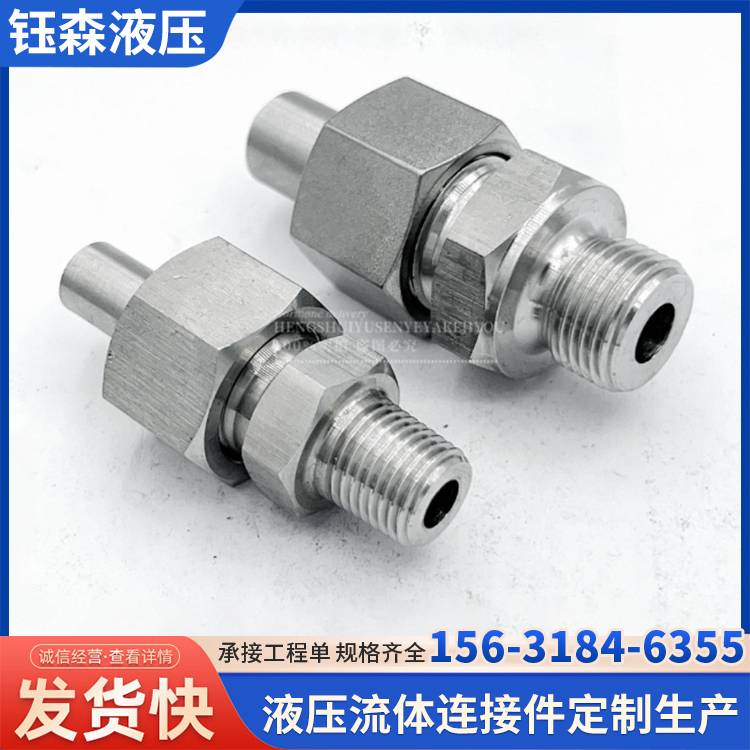 304不锈钢接头 双卡套直通中间管接头 表面喷砂研磨螺母镀银