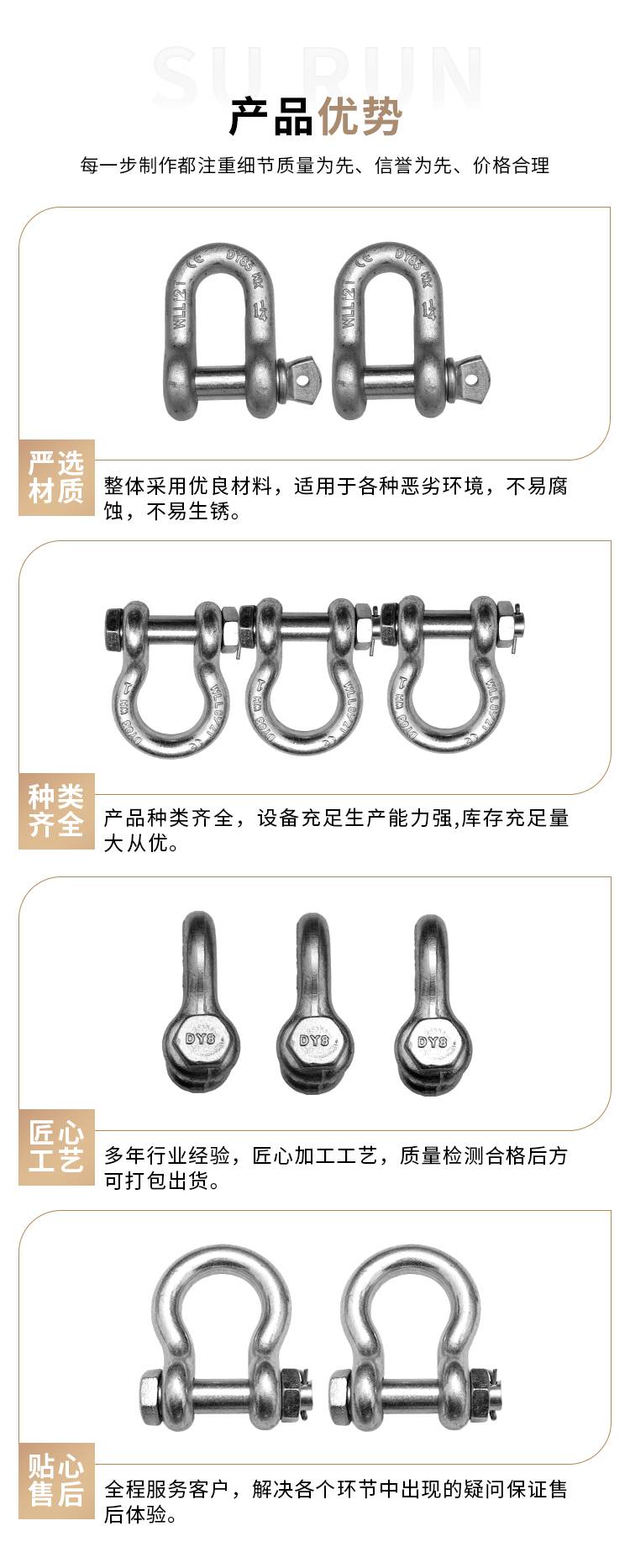 耐腐蚀抗疲劳 五金配件卸扣 应急救援可用 耐高温通用性强 苏润绳带