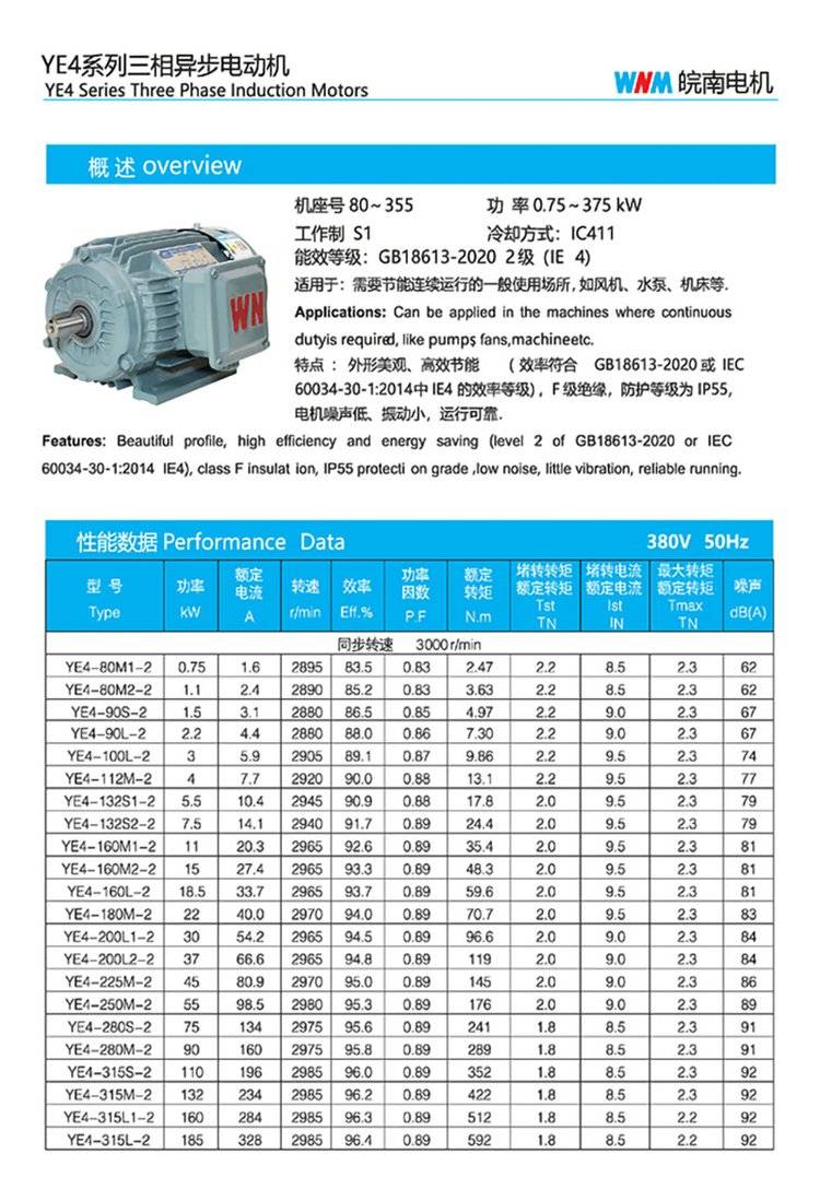 皖南YE4系列 三相异步电机 二级能效 全铜线圈 高效节能
