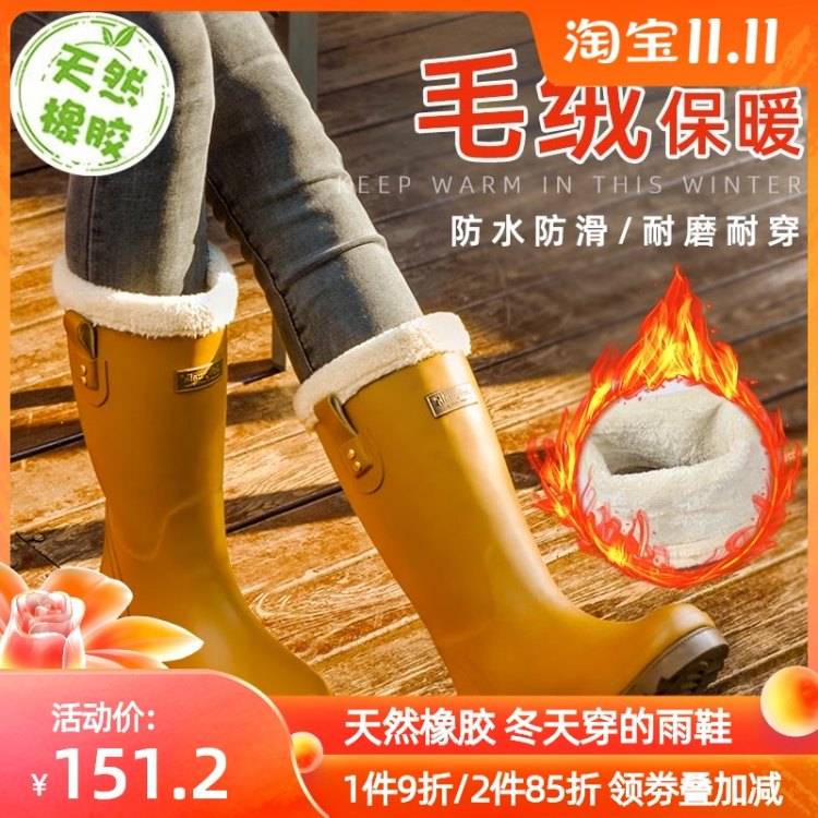 雨鞋女中筒雨靴秋冬加绒加厚款冬季保暖鞋防水防滑水鞋胶鞋套水靴