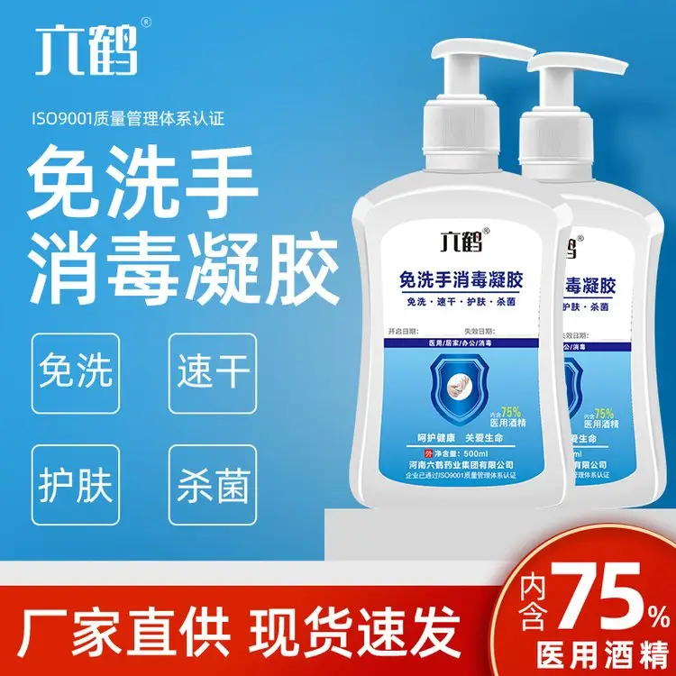 六鹤500毫升免洗洗手液医用免洗手消毒凝胶内含75%乙醇酒精供医院