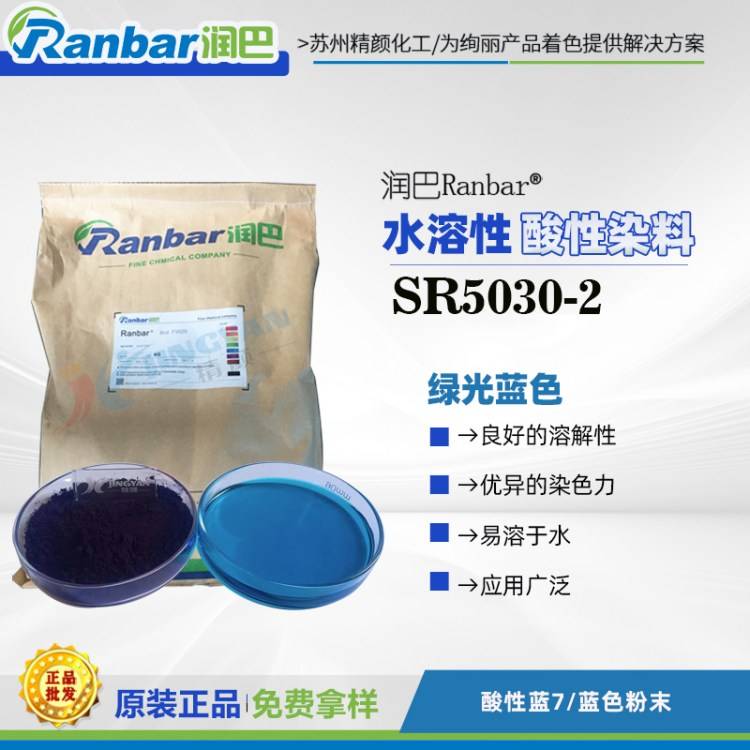 2222润巴SR5030-2酸性染料绿光蓝色阴离子染料水溶性染料酸性蓝7