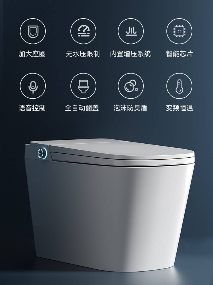 美国智能马桶一体式大座圈即热式全自动泡沫语音控制带水箱坐便器