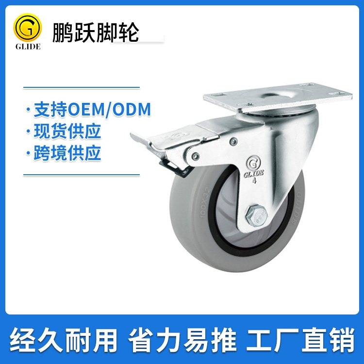 中型tpr脚轮双轴静音周转车货架丝杆万向滚轮子灰色橡胶轮子
