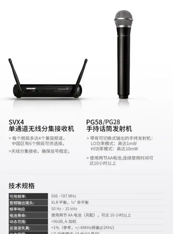 Shure/shur svx24/pg58 svx288/pg28 with two-wire microphones to talk