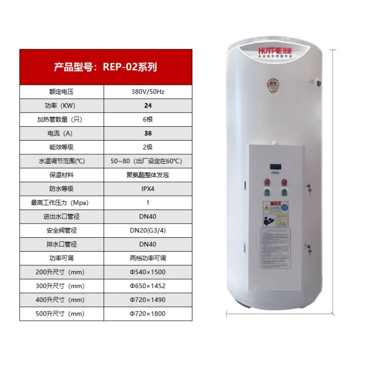 Hotpie/thermal pie commercial volume electric water heater 300 litres 24kw wholesal by automatic the