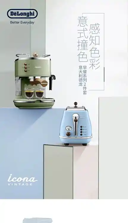 Delonghi/德龙复古系列半自动咖啡机+烤面包机/多士炉家用2件套