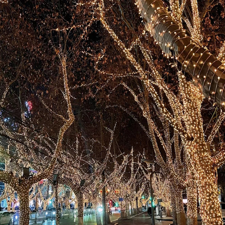 Led festival decoration lights, entangled inside controlled meteor shower tree lamps, used for chris