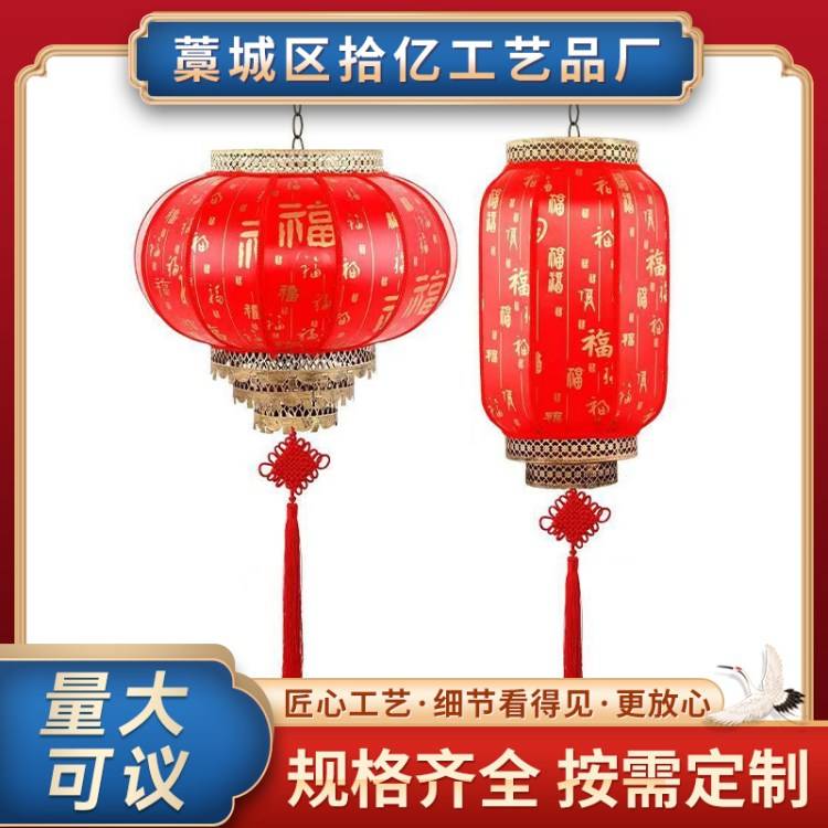Iron-coated silk silk lanterns outside the house