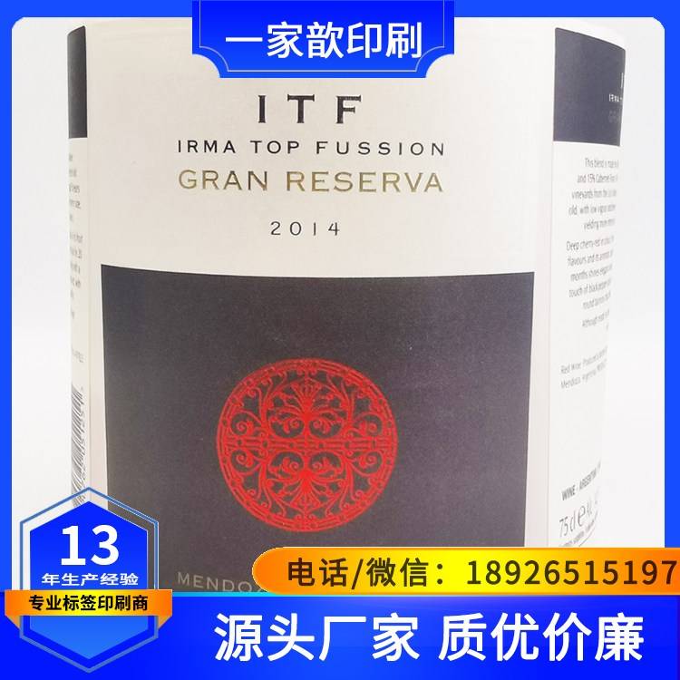 Printed drink labels, gold crumbs, special materials, wine labels, solvent resistance