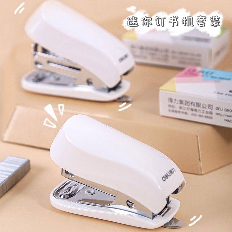 得力迷你小号订书机学生起钉器小型便携多功能订厚书装订办公用品