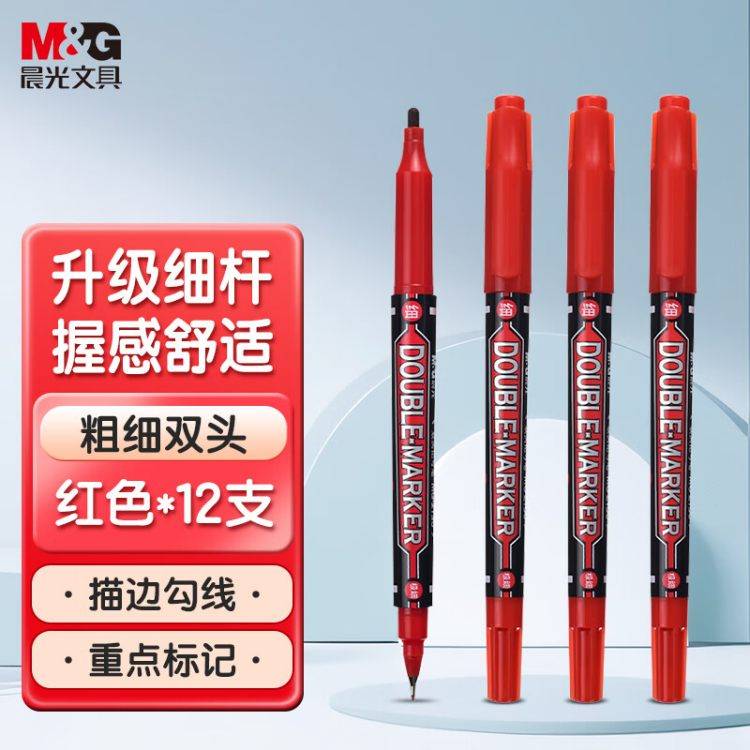 晨光红色记号笔 双头细杆标记笔勾线笔 12支/盒MG2130