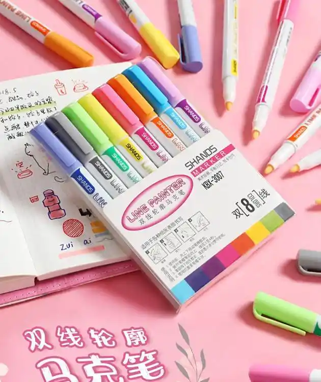 双线轮廓笔彩色马克笔手绘荧光标记笔记号笔多色一套学生用