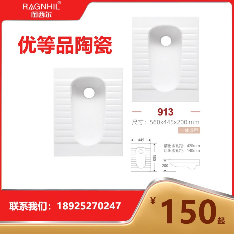 闰西尔1280°C烧制的优等品陶瓷蹲便器SC-913