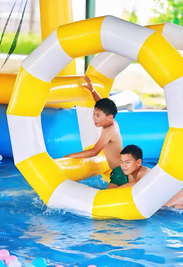 Inflated double-hull motorboat play facility