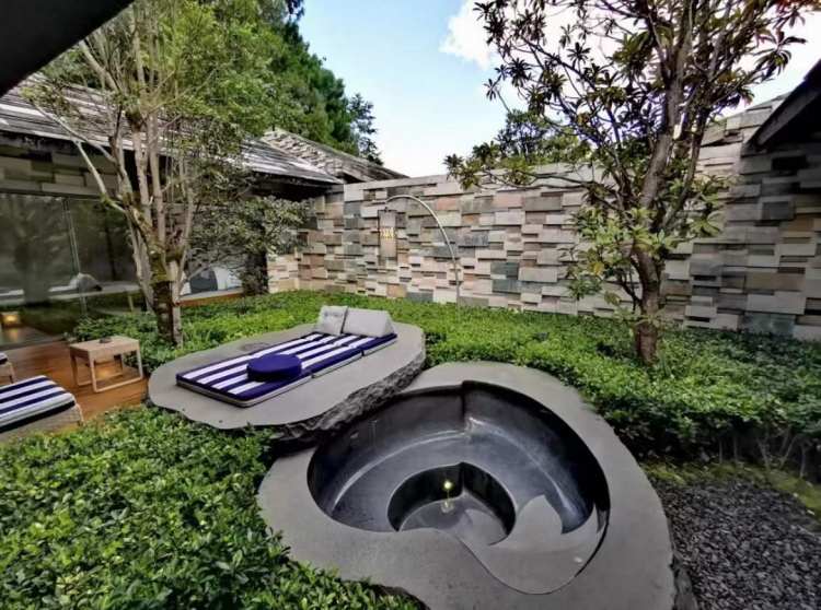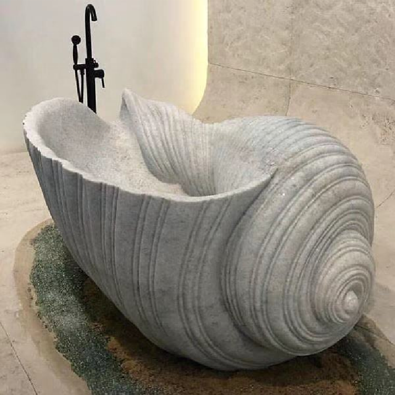 Stone-sculpture tubs, luxurious marble tubs inside and outside the resort, stone-white tub design