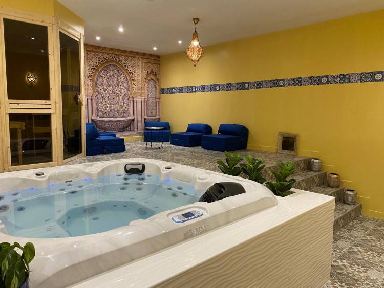 The hotel house, spa yacly, has a stand-alone bath for seven people using a hot tub