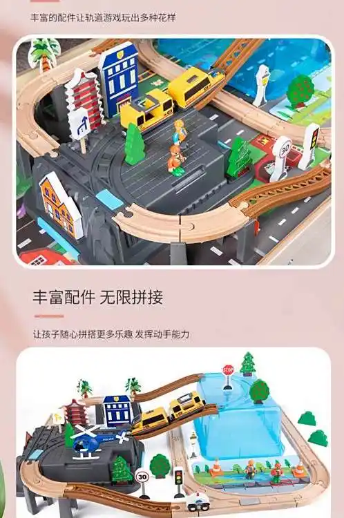 A wooden little train orbital set, magnetic electric car headwoods, wiring children's toys