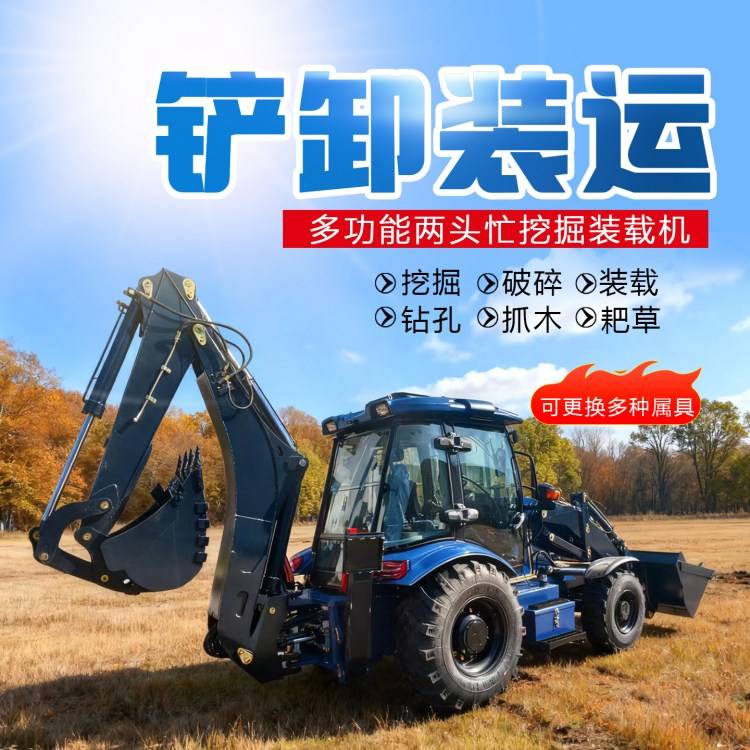 小型四驱两头忙挖掘装载机 农用果园大棚养殖场清粪铲运机 灵活作业