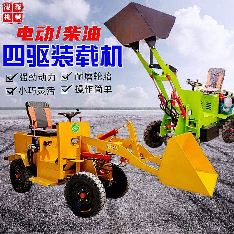 四驱电动小铲车装载机养殖场农用抓木环卫垃圾清运柴油工程铲运机