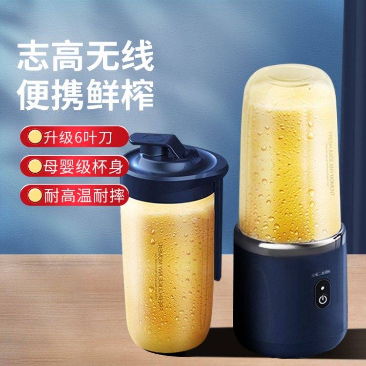 The shigau juicer uses wireless fresh, small portable glass of six blades of fruit to power the juic