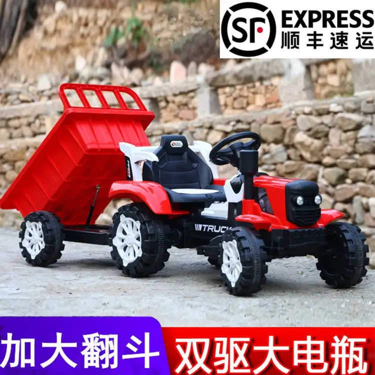 网红拖拉机儿童电动车四轮可双人大人小孩玩具车生日礼物宝宝