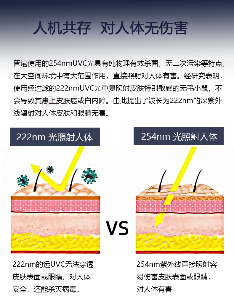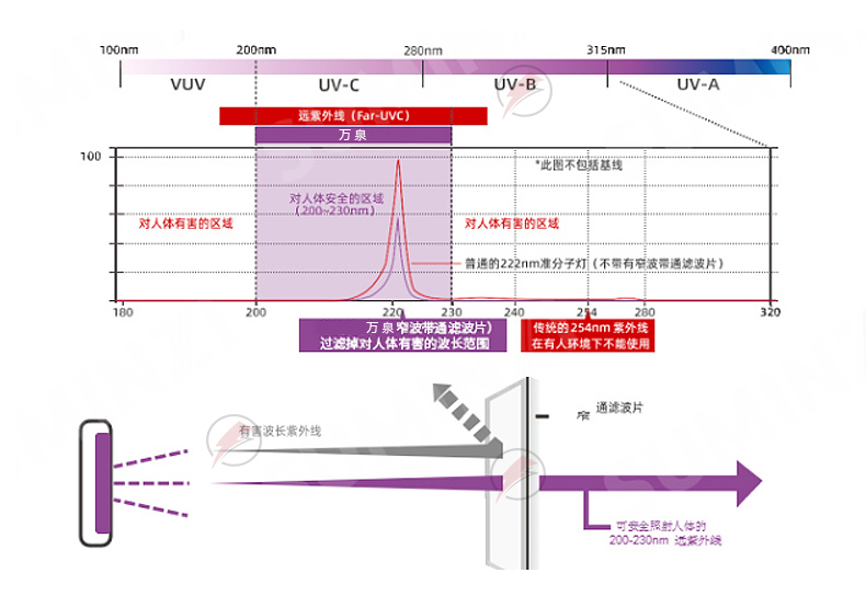 222nm uv-filtration uv-sterilisation lamp co-exist molecular medical use