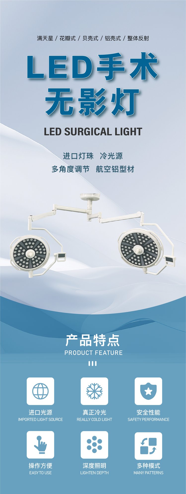 Led surgery, no-film lights, high colour index, 90 ra, 128 bells, professional medical lighting